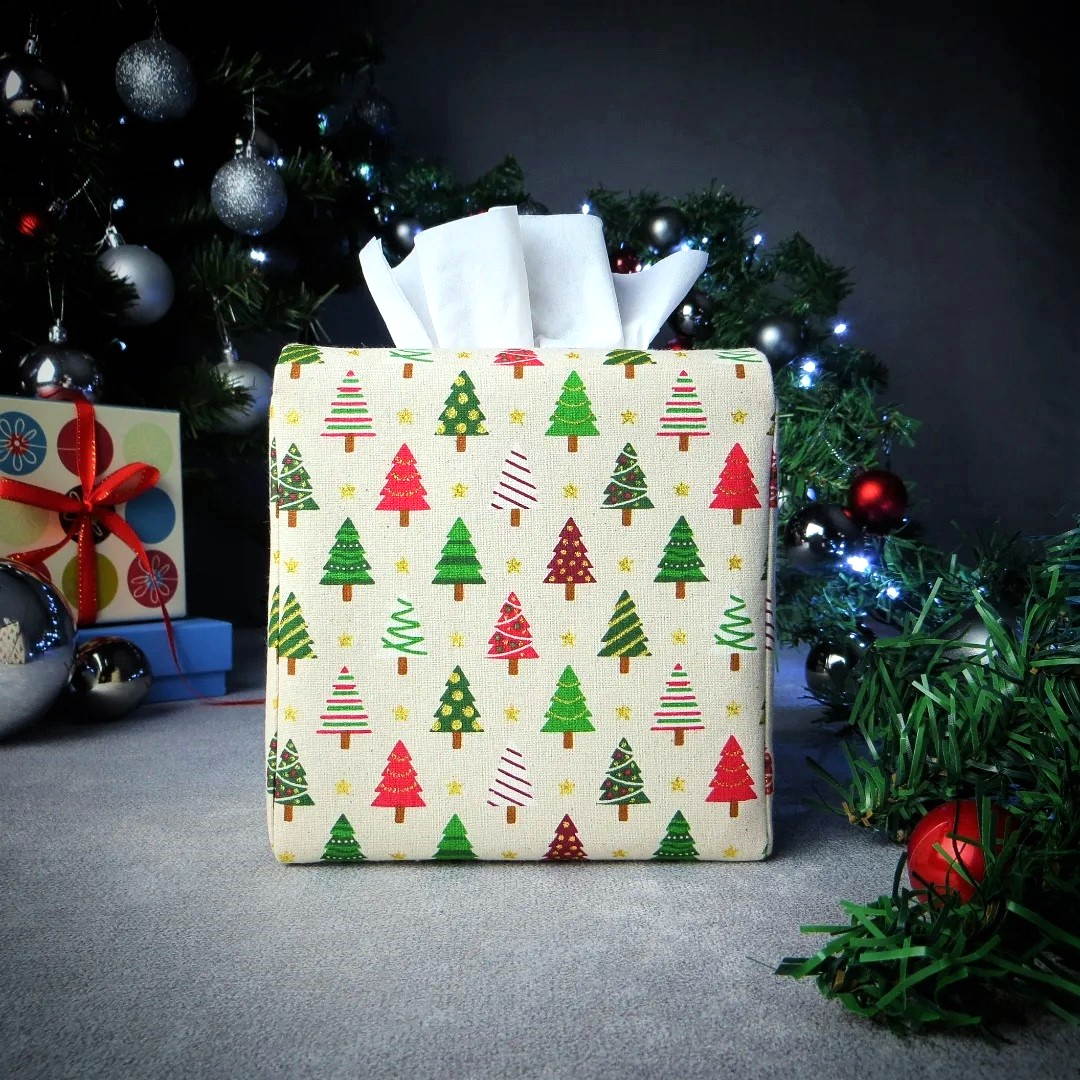 Cube Fabric Tissue Box Cover - Decorated Trees Christmas Design