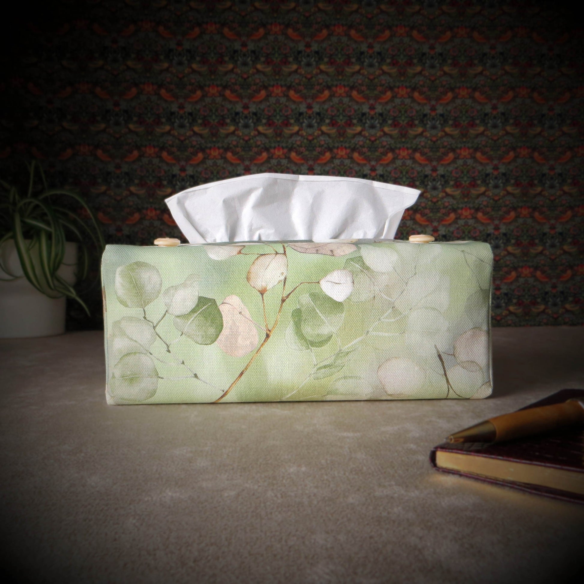 Rectangular Fabric Tissue Box Cover - Lunaria Leaves on Green